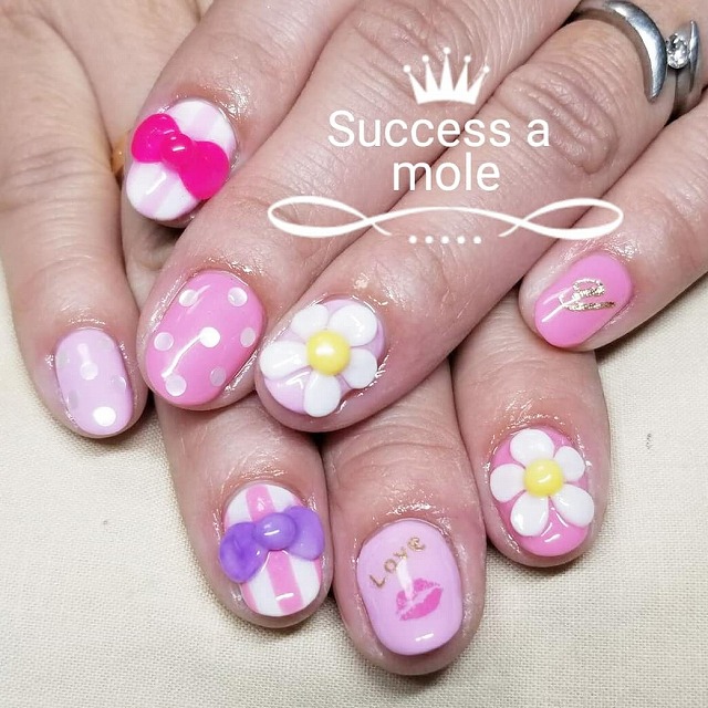 - 水玉ネイル 3Dフラワー 3Dリボン ピンクネイル 横浜 三ツ境 ネイル ネイルサロン