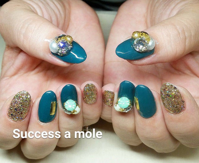 - ビジューネイル 秋ネイル カーキ ラメ ボルドー 三ツ境 希望が丘 横浜 ネイルサロン