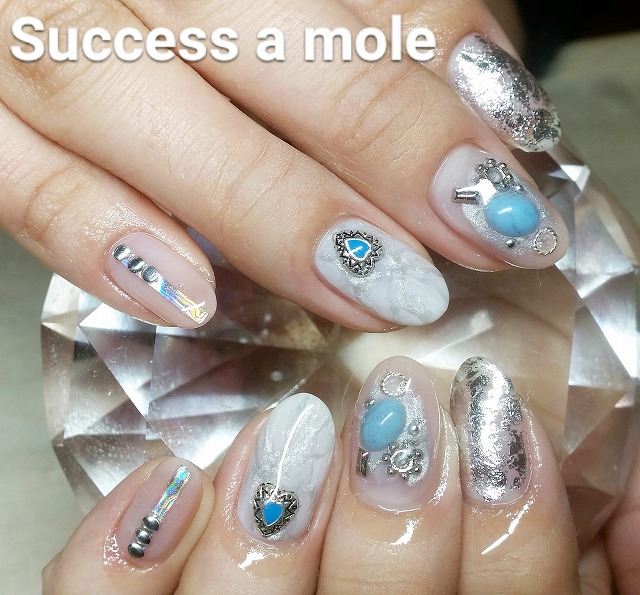 - シルバーパーツネイル、ピンクミラーネイル、パステルワンカラーネイル、2トーングラデーションネイル 三ツ境、横浜、ネイル、ネイルサロン