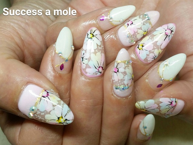 - 手描きフラワー、押し花ネイル 三ツ境ネイル、二俣川ネイルサロン、横浜ネイル、安い