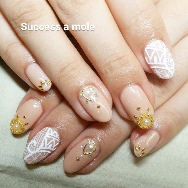 - 手描きレース、リップ3Dネイル