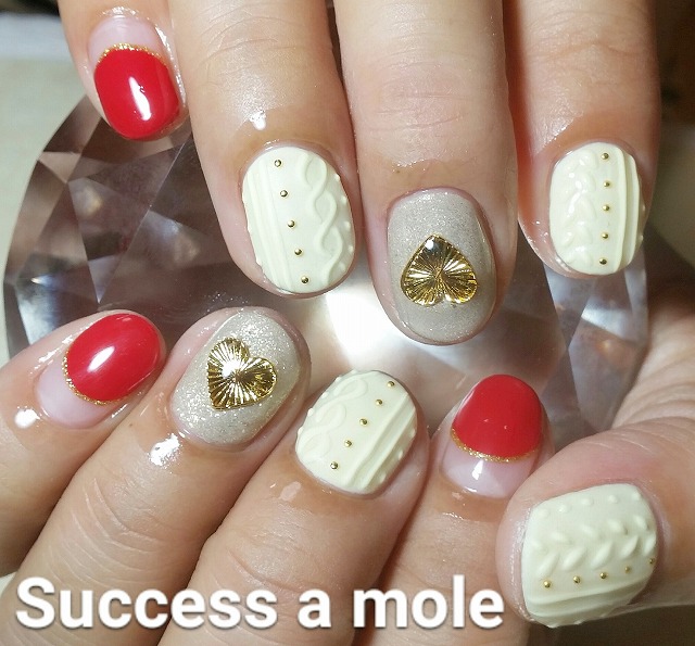 - ハートパーツニットネイル、和柄ネイル、だるま&鯛ネイル、ピンクニットネイル、雪の結晶ダブルフレンチ 三ツ境、横浜、ネイル