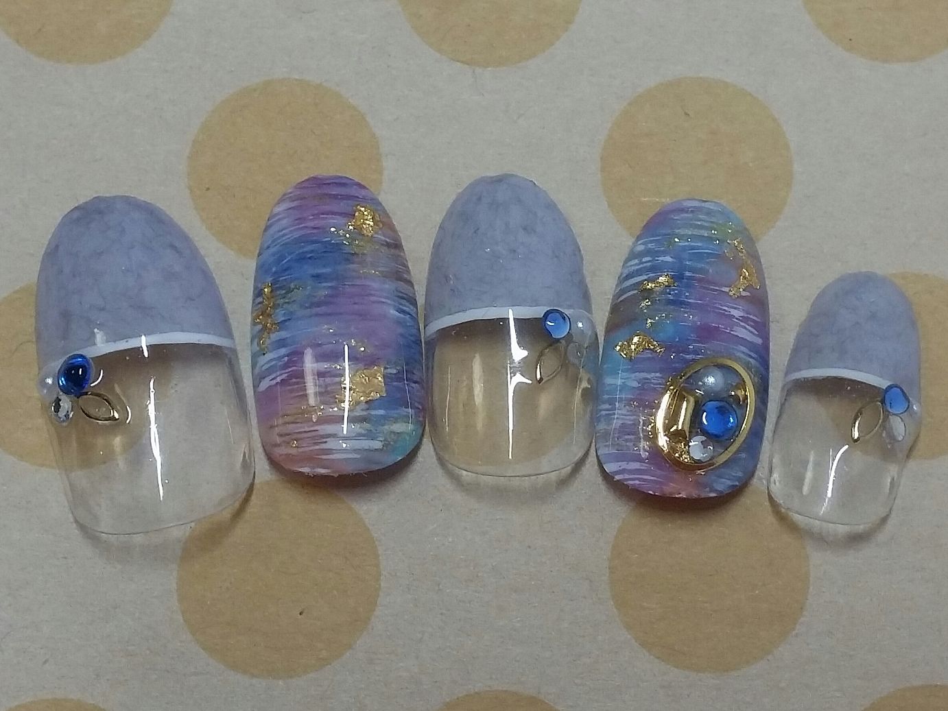 - アシンメトリーニュアンスアートネイル、ミラーおじさんネイル、ニットネイル、赤べっ甲ネイル、Vカットストーンネイル 三ツ境、横浜、ネイルサロン
