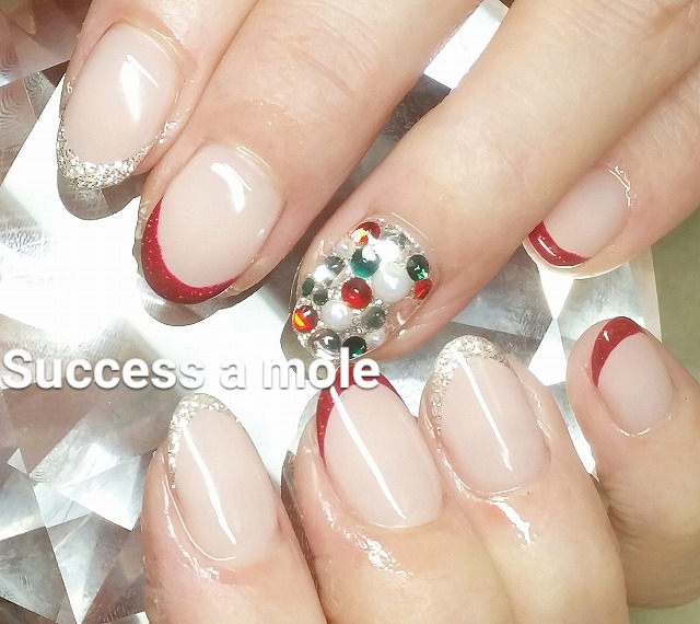 - 隠しグラデ細フレンチ、ブラウンぷっくりレオパード、カラフルクリスマスネイル、スカルプブライダルネイル、サンタさん3D&リースクリスマスネイル 三ツ境、横浜、ネイル、ネイルサロン