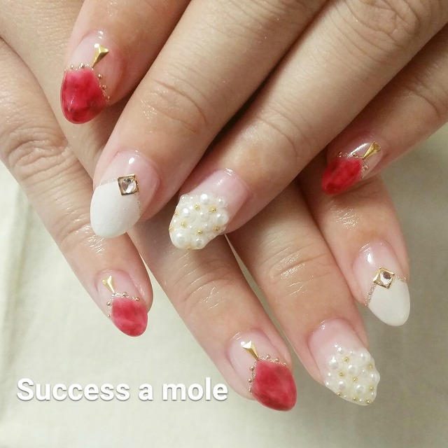 - 赤マーブルネイル、変形ペイズリーネイル 三ツ境ネイル、二俣川、横浜ネイルサロン、安い