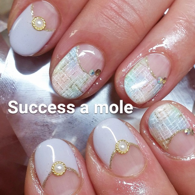 - ツイードチェックネイル、モードネイル、白フレンチ 三ツ境、横浜、ネイル、ネイルサロン