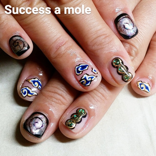- アンモナイトネイル、ピンクミラーネイル、べっ甲グラデーション、ピンクローズネイル、フレンチネイル