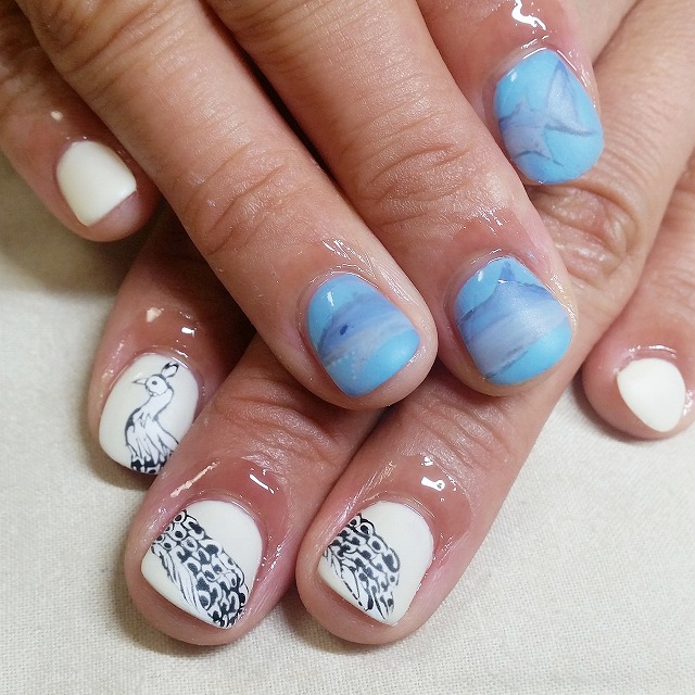 - サメ&孔雀ネイル、細フレンチ、べっ甲柄ネイル 横浜ネイルサロン/サクセスアモール/流行ネイル/おすすめ/安い/三ツ境/二俣川/人気