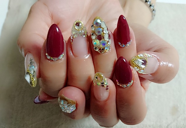 - ボルドーストーンフレンチネイル 横浜ネイルサロン/サクセスアモール/流行ネイル/おすすめ/安い/三ツ境/二俣川/人気