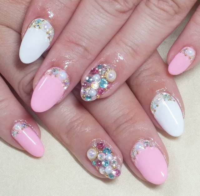 - バイカラーフレンチ、キャラクター3Dネイル 横浜ネイルサロン/サクセスアモール/流行ネイル/おすすめ/安い/三ツ境/二俣川/人気