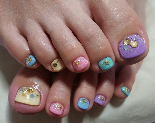- カラフル水面フットネイル 横浜ネイルサロン/サクセスアモール/流行ネイル/おすすめ/安い/三ツ境/二俣川/人気