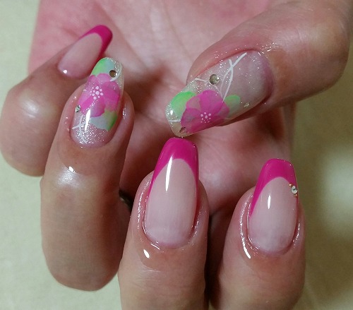 - パールボーダーネイル、パステルフラワーネイル、ビンディエキゾチックネイル 横浜ネイルサロン/サクセスアモール/流行ネイル/おすすめ/安い/三ツ境/二俣川