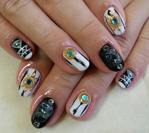 - エジプト天然石ネイル、BIGハートネイル 横浜ネイルサロン/サクセスアモール/流行ネイル/おすすめ/安い/三ツ境/二俣川