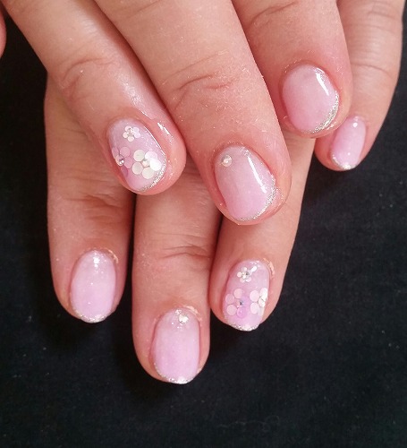 - ワンカラーネイル、クリアピンクお花囲みネイル 横浜ネイルサロン/サクセスアモール/流行ネイル/おすすめ/安い/三ツ境/二俣川