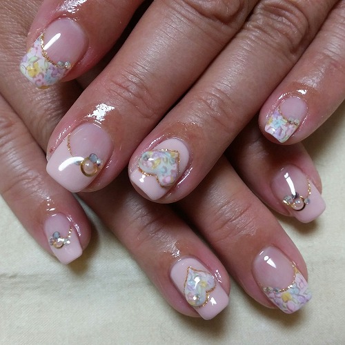 - フラワー3Dハートネイル、隠しグラデラメフレンチ 横浜ネイルサロン/サクセスアモール/流行ネイル/おすすめ/安い/三ツ境/二俣川