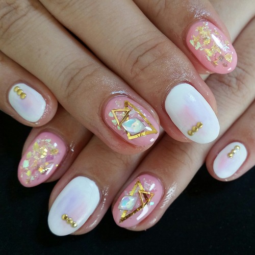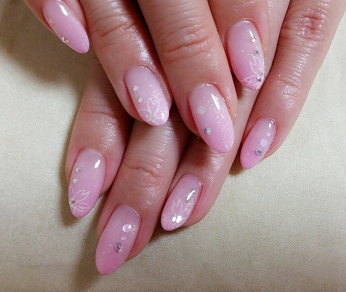 - 春カラーオーロラスタッズネイル、ピンクグラデーション 横浜ネイルサロン/サクセスアモール/流行ネイル/おすすめ/安い/三ツ境/二俣川