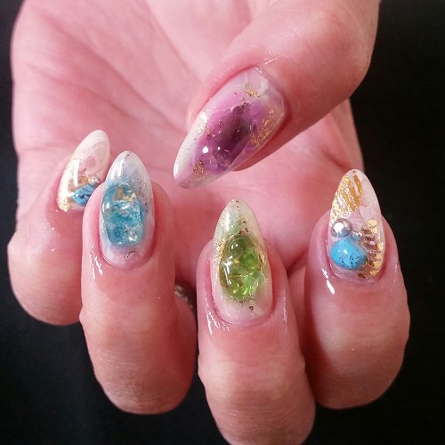 - 天然石カラフルストーンネイル、隠しグラデラメフレンチ 横浜ネイルサロン/サクセスアモール/流行ネイル/おすすめ/安い/三ツ境/二俣川