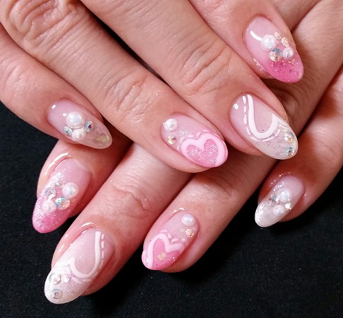 - ハートステッチ風グラデーション 横浜ネイルサロン/サクセスアモール/流行ネイル/おすすめ/安い/三ツ境/二俣川