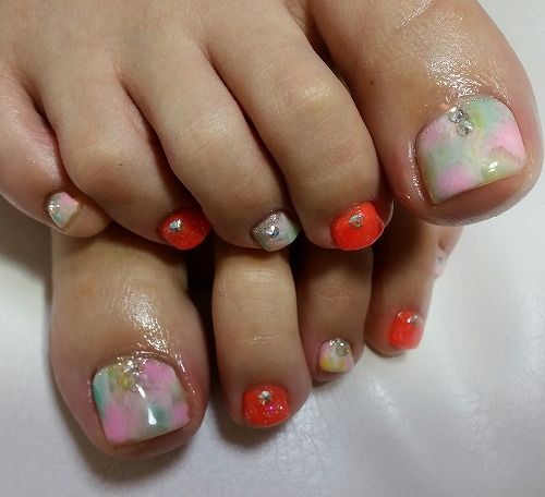 - パステルタイダイフットネイル、フラワーアートネイル、シアー天然石ネイル 横浜ネイルサロン/サクセスアモール/流行ネイル/おすすめ/安い/三ツ境/二俣川