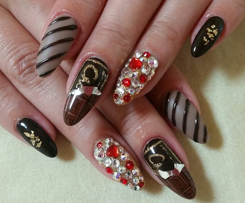 - 砕けたナッツバレンタインネイル、赤フレンチキャラクターネイル 横浜ネイルサロン/サクセスアモール/流行ネイル/おすすめ/安い/三ツ境/二俣川