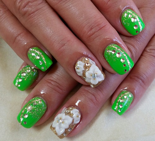 - ネオングリーン3Dフラワーネイル、苦悩する人々ネイル 横浜ネイルサロン/サクセスアモール/人気/大人/二俣川/希望が丘/瀬谷/大和