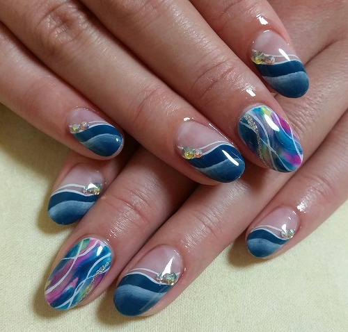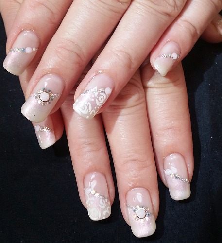- ウェービーアートフレンチ、オーロラ白グラデーション、雪の結晶グラデーション 横浜ネイルサロン/サクセスアモール/人気/大人/二俣川/希望が丘/瀬谷/大和