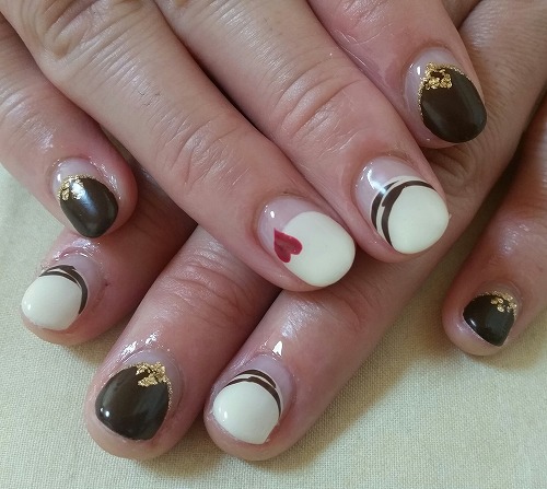 - チョコレート丸フレンチ、バレンタインぷっくりハートネイル 横浜ネイルサロン/サクセスアモール/人気/大人/二俣川/希望が丘/瀬谷/大和