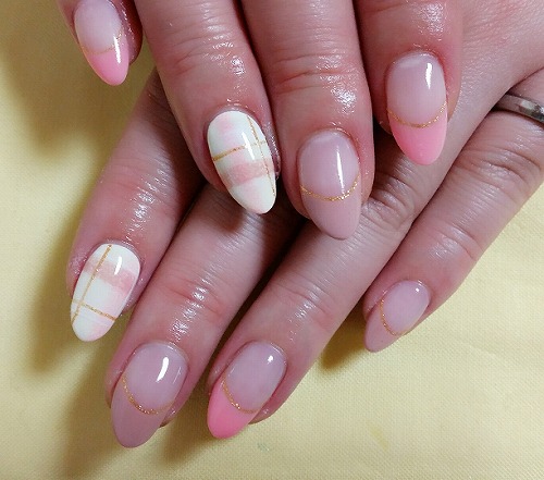 - 幾何学模様ネイル、ブランケットチェックネイル 横浜ネイルサロン/サクセスアモール/人気/大人/二俣川/希望が丘/瀬谷/大和